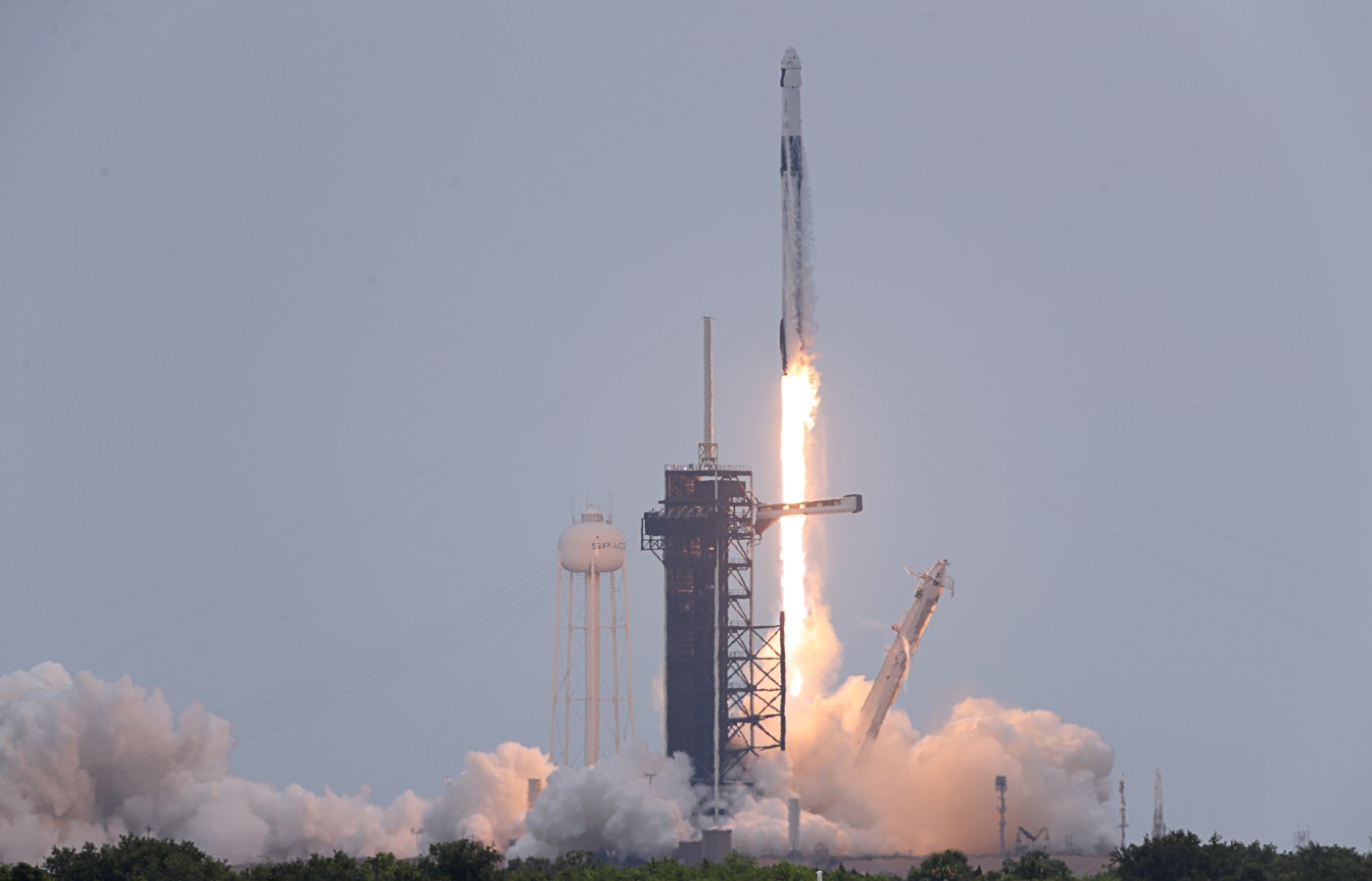By 9 a.m. the had made their way up the launch tower to climb back on board their spacecraft. With an hour to go, all were prepped in their seats with the hatch closed awaiting fueling and arming of the launch escape system.