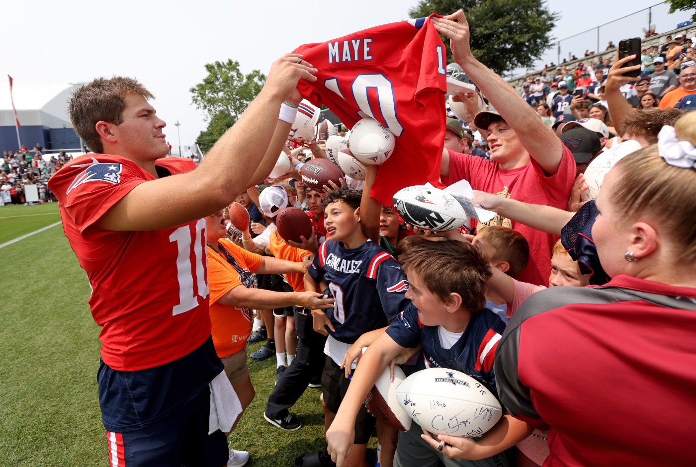 Despite the interception, Maye came out of Wednesday’s practice with a positive mindset about how his offense competed and how the unit has progressed in offensive coordinator Josh McDaniels’ scheme.