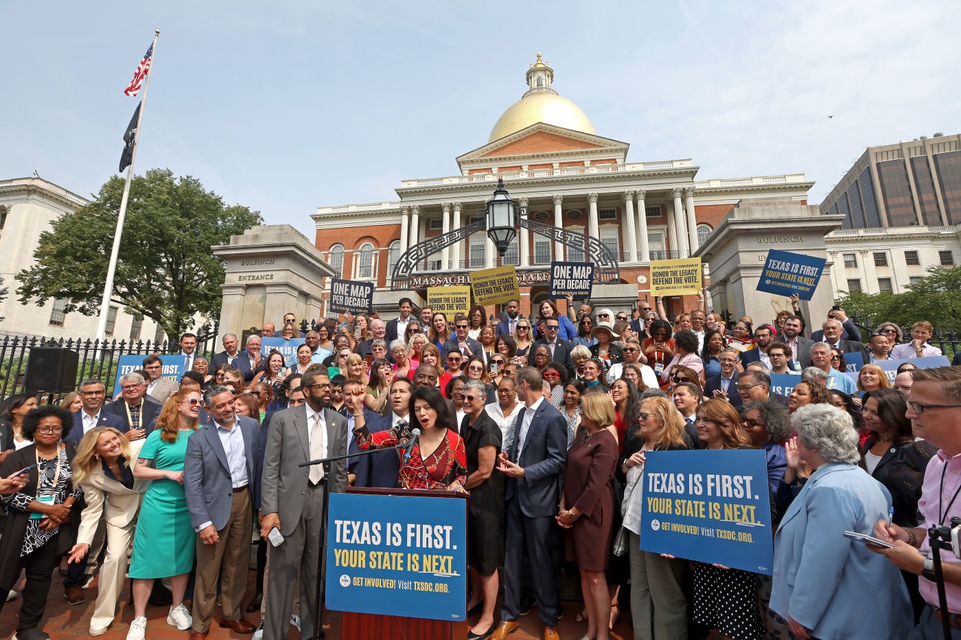 Texas Democrats rally outside Massachusetts State House amid redistricting fight