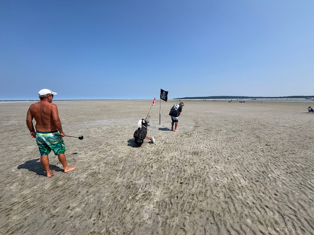Careful to wait until no other beach dwellers were in the line of their sandy fairway, they teed up and then let it rip – sending their drive soaring into the stiff salty breeze.
