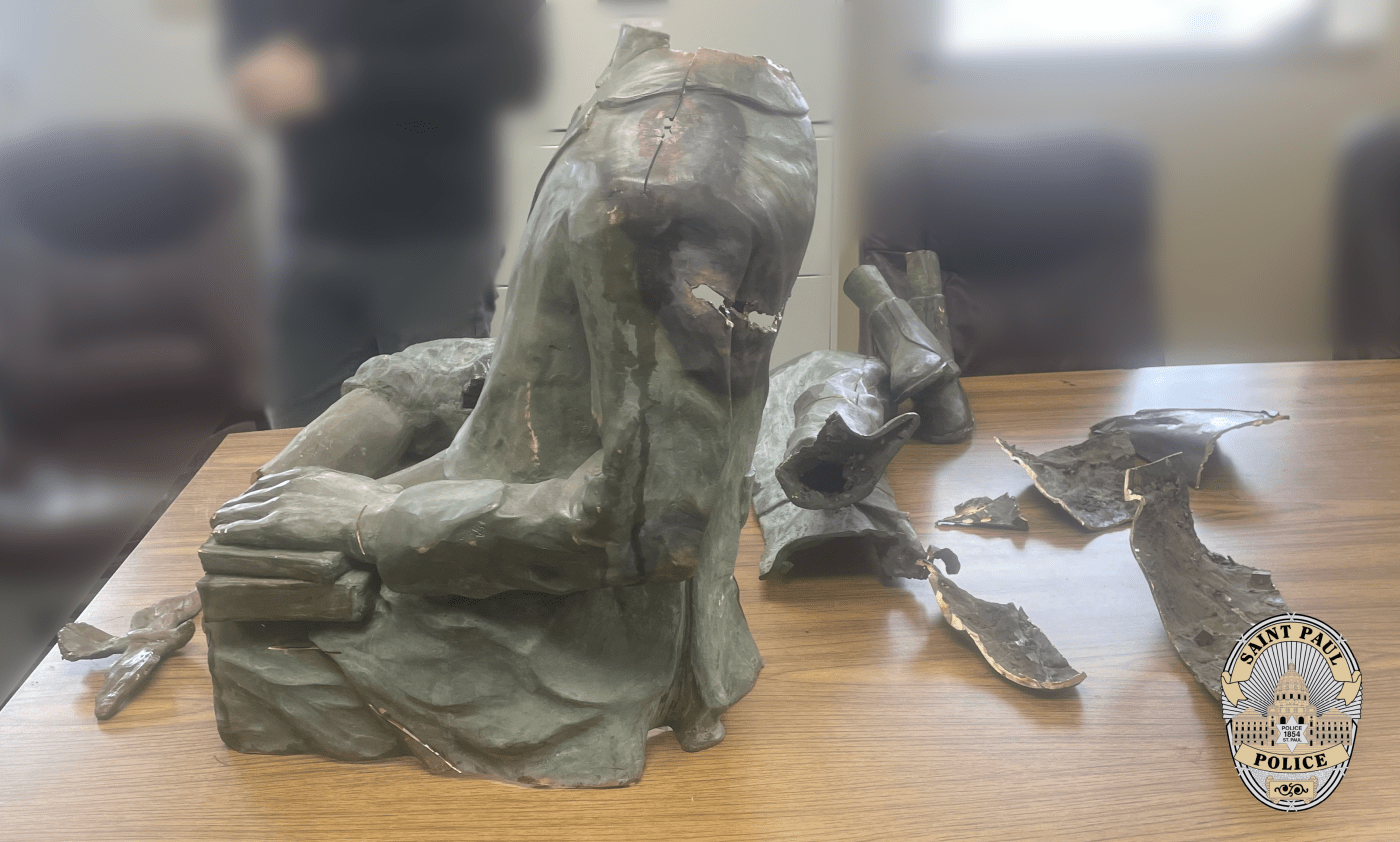 Although some pieces of the statue were recovered, others remain missing, including the head, St. Paul police said Monday.