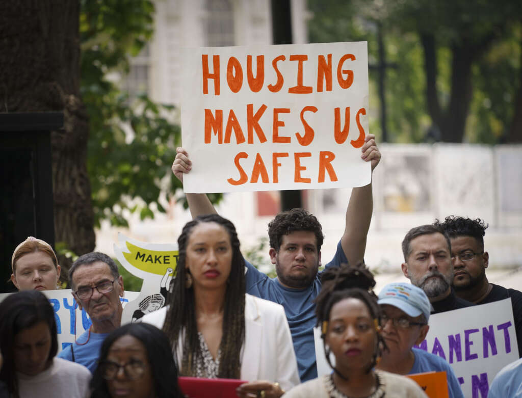 New York City lawmakers and advocates at a 2023 rally calling for the expansion of CityFHEPs, the city’s main voucher program. (Gerardo Romo / NYC Council Media Unit)