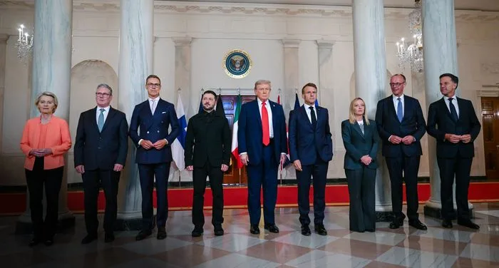 Starmer, Macron, Merz, Meloni, Stubb, Rutte, and von der Leyen joined Zelenskyy and Trump at the White House, reflecting widespread interest in bringing the Russia–Ukraine war to a conclusion.