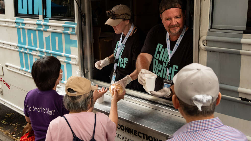 In response to this summer’s sweltering weather, City Relief launched the LemonAID campaign, an outreach initiative aimed at addressing the heightened vulnerability of people experiencing homelessness during heat waves by offering cold water, fresh lemonade, and hot meals.