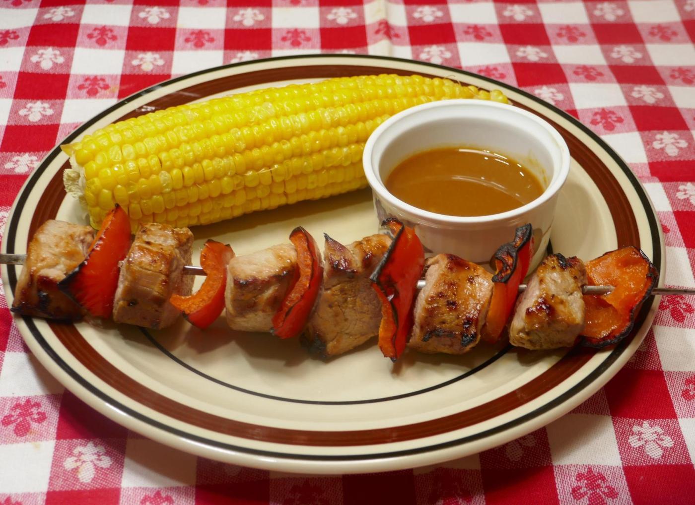 Sweet and Tangy Pork Kabobs with Corn on the Cob