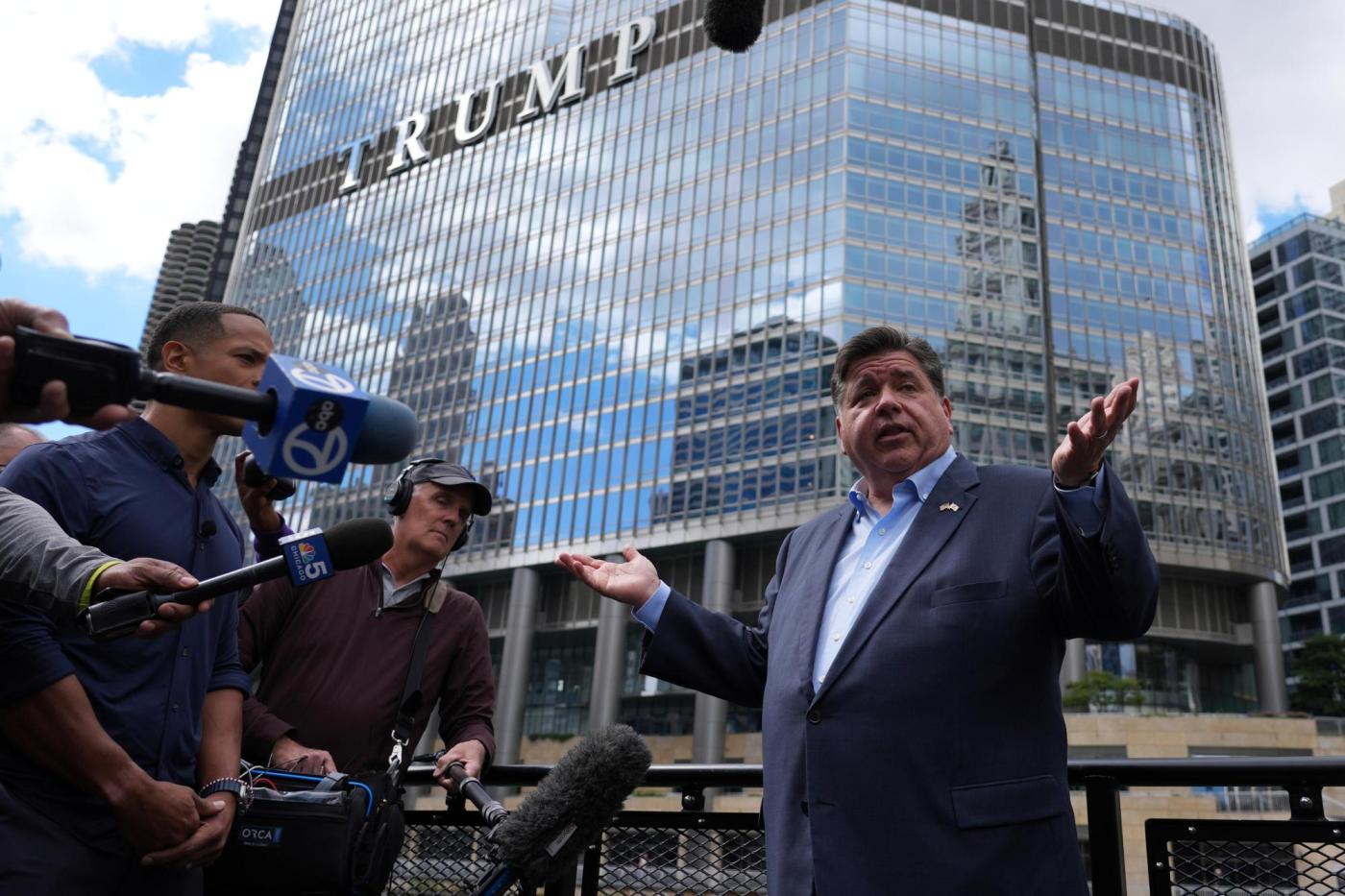 “This is not about fighting crime,” said Pritzker, flanked on Monday by Chicago Mayor Brandon Johnson and other leaders, adding that it’s more about “an arrogant little man” trying to “intimidate his political rivals.”