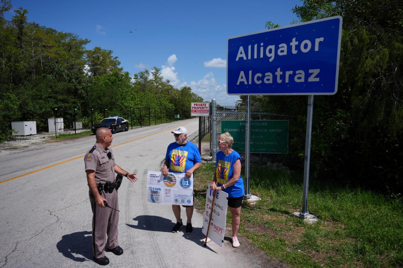 Republican Gov. Ron DeSantis’ administration in late June raced to build the facility on an isolated airstrip surrounded by wetlands to aid President Donald Trump’s efforts to deport people in the U.S. illegally. The governor said the location in the rugged and remote Everglades was meant as a deterrent against escape, much like the island prison in California that Republicans named it after.