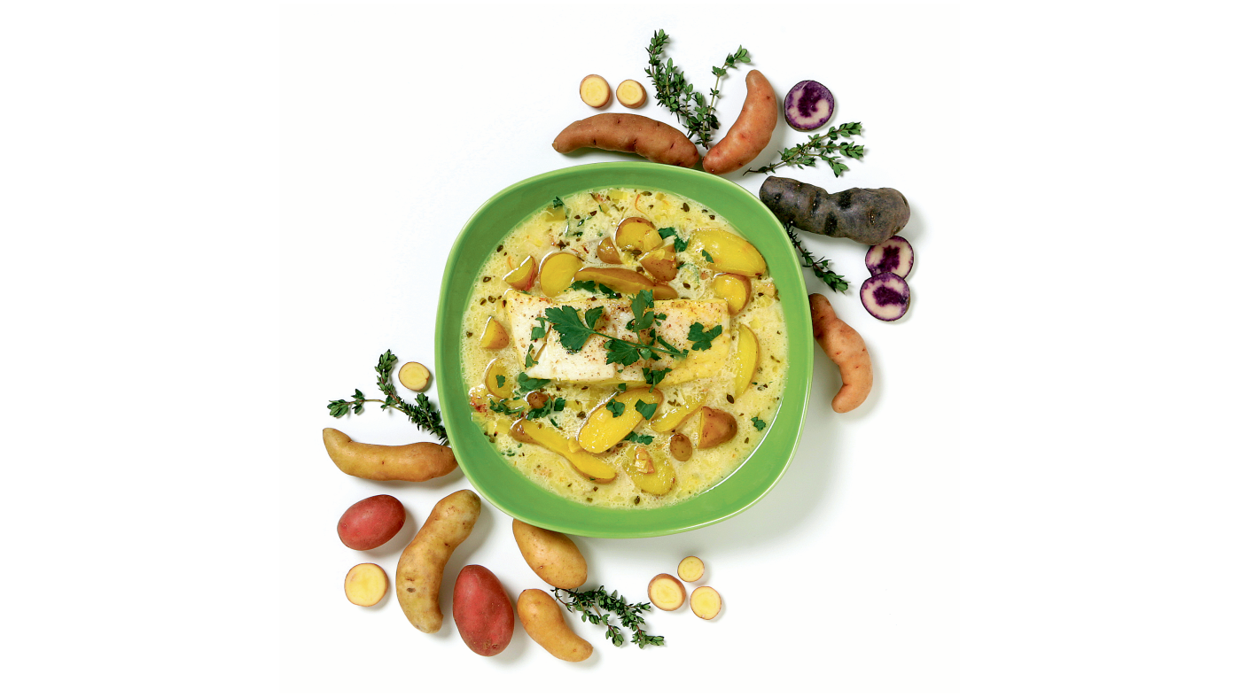 Chowder With Halibut, Saffron and Potatoes