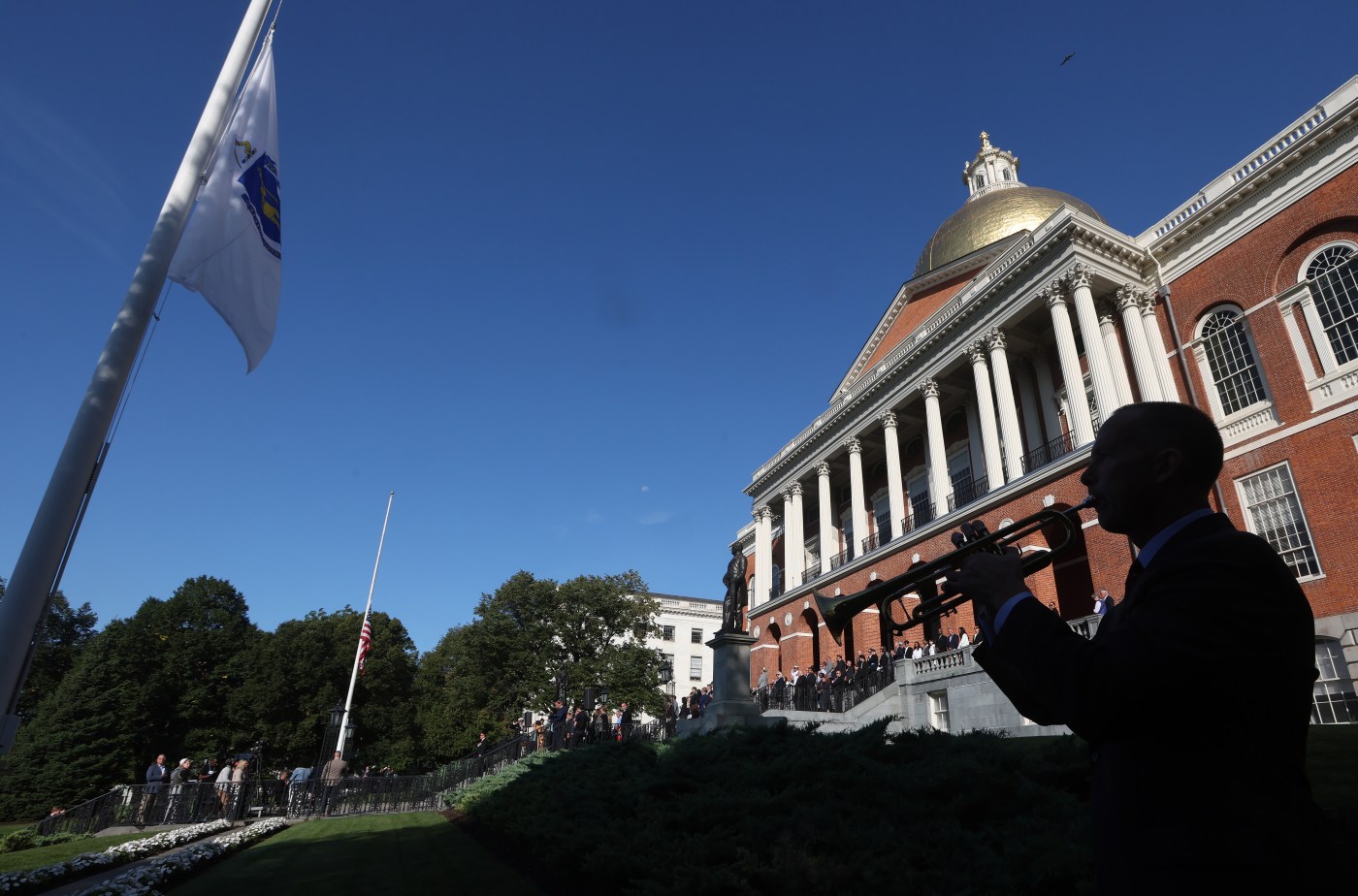 The day’s events began at 8:30 a.m. on the State House steps as 9/11 victims’ family members, Gov. Maura Healey, Lt. Gov. Kim Driscoll, Attorney General Andrea Campbell, Boston Mayor Michelle Wu and First Lady Joanna Lydgate took part in a reading of the names of the Bay State victims of the attacks.