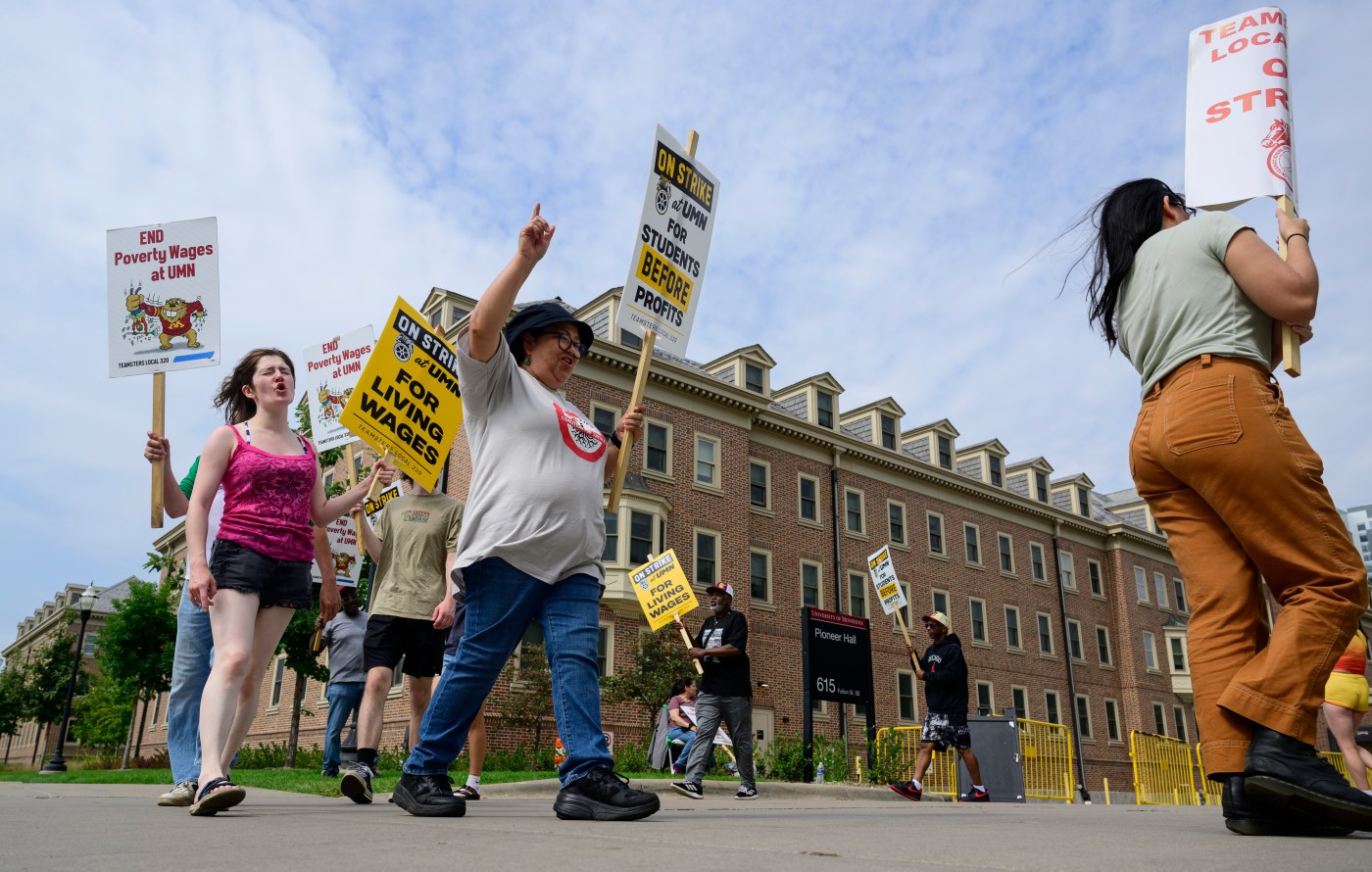 Members of Teamsters Local 320, which represents 1,400 custodial, food service, maintenance and sanitation workers on campuses around the state, went on strike Monday night at the Crookston and Morris campuses and expanded to Duluth and satellite campuses Tuesday morning. Workers at the Twin Cities campus joined the strike Tuesday night.