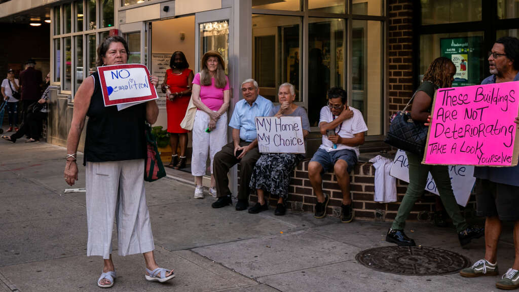 Chelsea Addition resident Aleksandra Jargilo, 76, shared, “I’m scared.” But fear hasn’t weakened her and many of her neighbors’ resolve to stay. Like many NYCHA residents, Aleksandra has a history of prior displacement, arriving in the U.S. in 1982 as a Polish refugee: “I escaped communist Poland.” Beating her chest, she shouted, “And I’m not moving.”