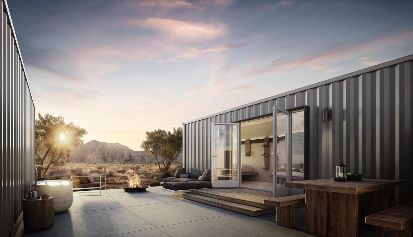 Soon after completing his shipping container house, Uyeda began having conversations with his now business partner Adam Wininger about how the rise of Airbnb was converting desperately needed housing in the desert to vacation rentals. They wondered if building modular structures on land that was already zoned for commercial use might be one solution to increasing lodging units without impacting local housing supply. While the process of building modular is not cheaper than a regular build, it is faster, especially in a remote desert location.
