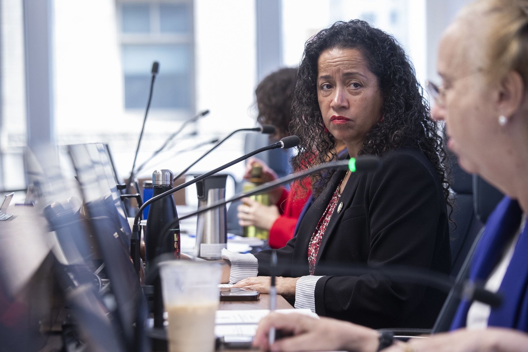 City Council Immigration Committee Chair Alexa Avilés at Tuesday’s hearing, where she said the administration is “a lot of talk and no action,” as immigrants are being targeted for arrests. (John McCarten/NYC Council Media Unit)