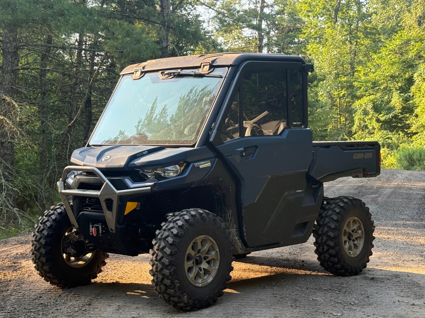 Features on the Defender is where upscale meets the demand. Air Conditioning, USB ports, LED lighting, adjustable seats, 4,500-lbs Winch, adjustable steering wheel, 7.6 digital display with keypad, towing capacity up to 2,500 lbs and 30-inch tires. If this isn’t getting you excited, I’m not sure what is. Additionally we utilized the 3-drive modes including 2WD/4WD/Turf mode, 65-inch wide arched A-arms, XT Front bumper, rear glass window, power side windows, and a front 3-position full-glass tilt-up windshield with wiper kit. Utilizing the Defender Limited was the best of all. Its high stance exceeded expectations as its ability to go anywhere and do anything was evident.