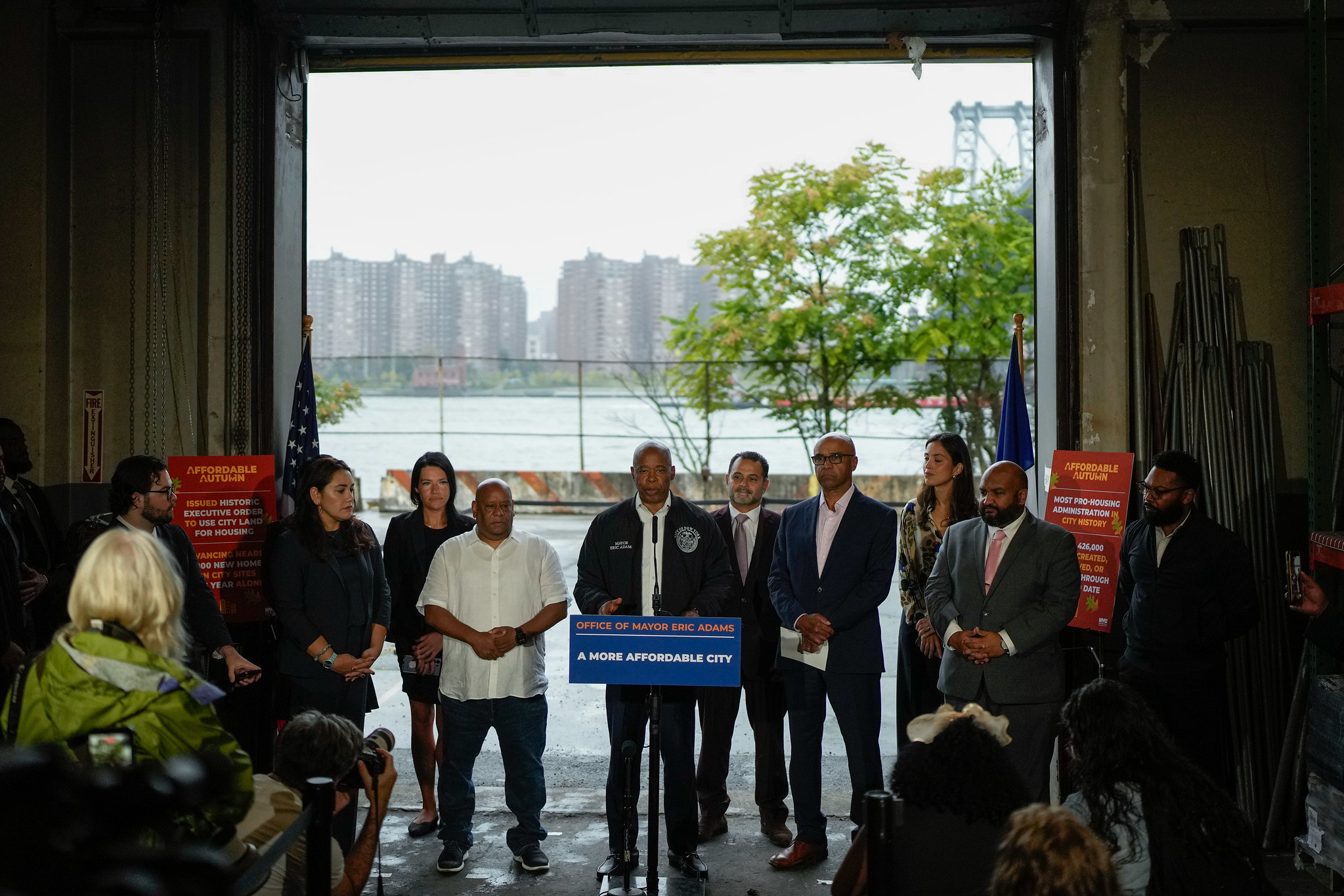 He highlighted two new proposals on the Williamsburg waterfront and along the East River In East Harlem, where officials hope to build 900 and 800 homes, respectively. One-quarter of those homes would be set aside as affordable housing, Adams said.