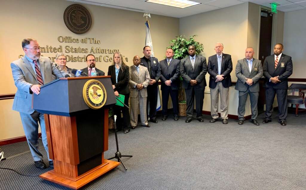 Funcionarios durante una rueda de prensa celebrada el 22 de noviembre de 2021 para anunciar las acusaciones formales en la «Operación Blooming Onion». (U.S. Attorney for the Southern District of Georgia)
