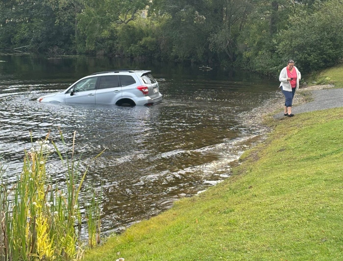 The unidentified motorist’s failure to put her car in park sent the SUV rolling into Pratt Pond next to the cemetery in Upton, police said.