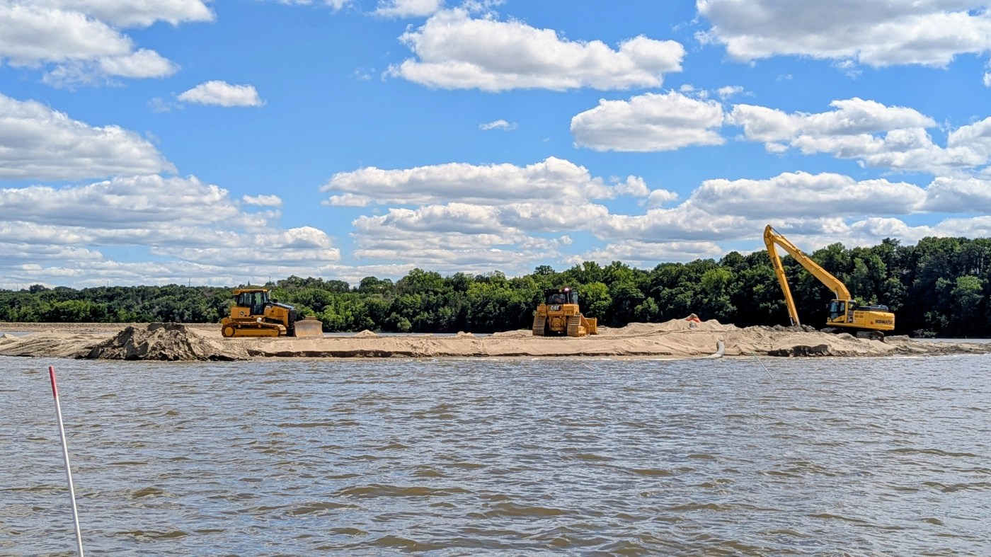Crews are currently mechanically dredging sediment from the river to build the new island. Castellane said upon completion, the aim is for the new land to provide a native ecosystem for plants and wildlife — hoping that the emergent wetland of the center of the island attracts frogs, snakes, turtles and birds.