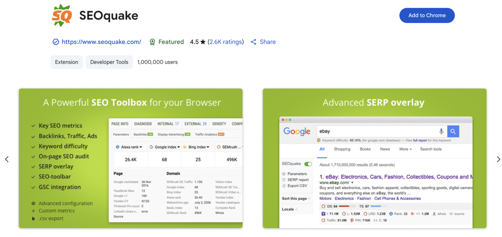 Go to the Chrome Web Store and search for ‘SEOquake.’