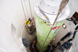 An unarmed Minuteman III missile sits inside a silo at F.E. Warren Air Force Base in Wyoming on July 9, 2025. (Michael A. Richmond/U.S. Air Force/TNS)