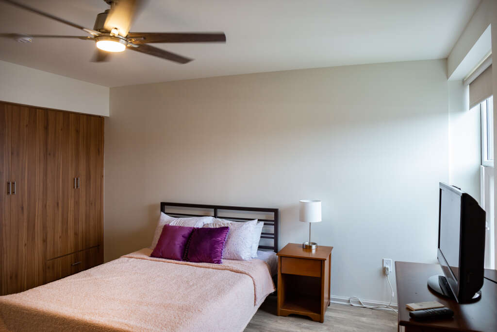 A bedroom in a supportive housing apartment. (Adi Talwar/City Limits)