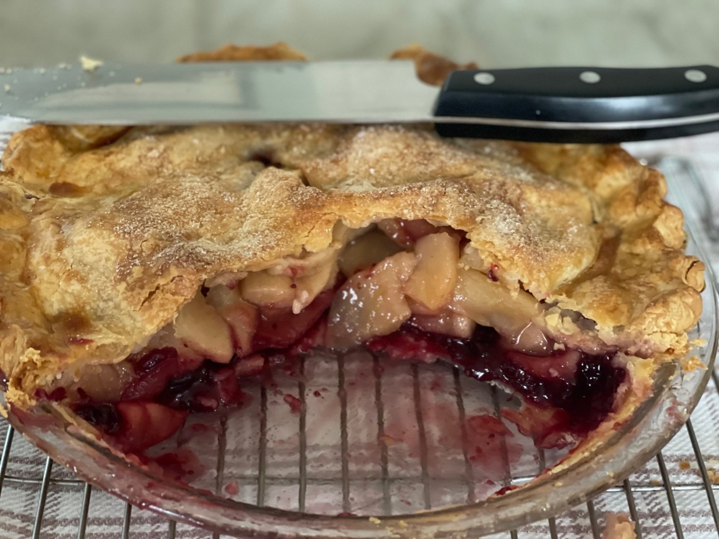The combination of flavors in this pie is blissful, the sweetness of the apples merrily dancing with the tart edge of the cranberries. I like to serve this pie with either sweetened whipped cream or ice cream.