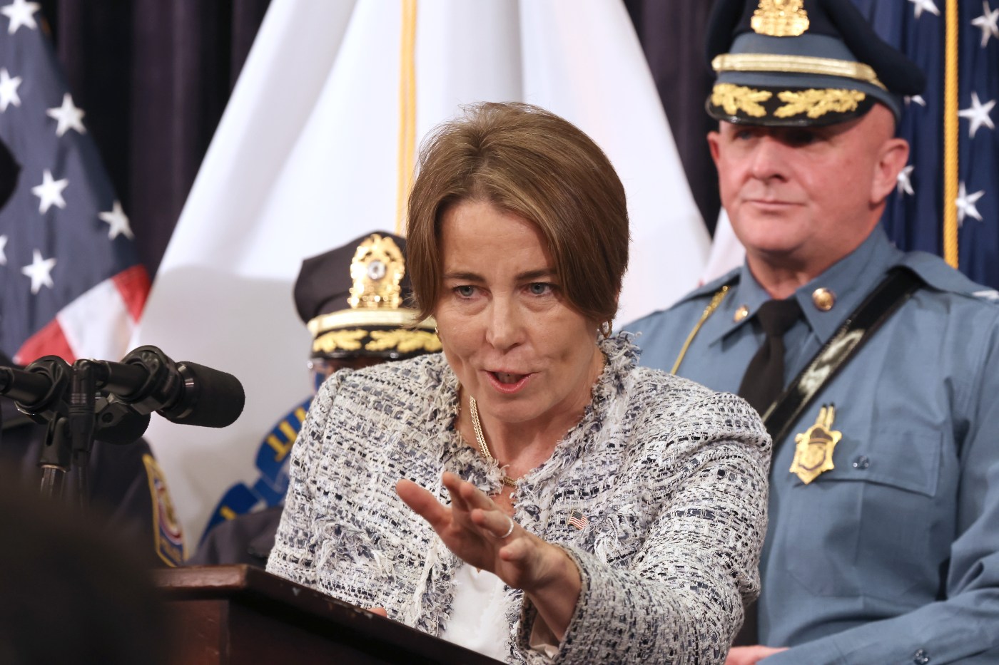 “I was a little curious,” Healey said of Trump’s comments, “because, of course, the games are in Foxboro, and I think Robert Kraft and the team have safety well in hand. I’ll also say that Massachusetts, we remain among the safest states in the country because of the incredible work done by law enforcement at the local and state level. And we’re just going to continue to do that.”
