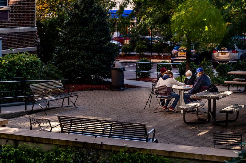 An early evening games of dominoes at Serviam Gardens, an affordable housing complex for seniors in the Bronx. (Adi Talwar)