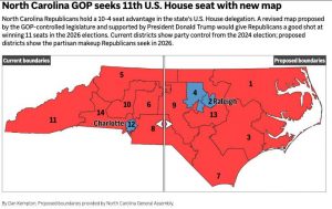 RALEIGH, N.C. (AP) — North Carolina’s legislature formally began redrawing the state’s congressional district map Monday, plainly stating their intent to help Republicans gain another U.S. House seat under President Donald Trump’s push to retain his party’s grip on Congress next year.