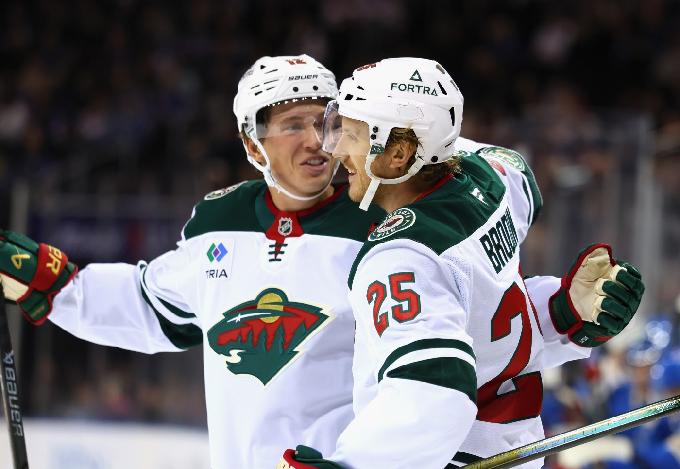 Trailing 1-0 early, the Wild drew even when Brodin blasted a low shot from the top of the left circle. On its way to the net, the puck deflected off a Ranger’s stick, then off the stick blade of Shesterkin, before ramping into the upper right corner. It was Brodin’s first goal of the season.