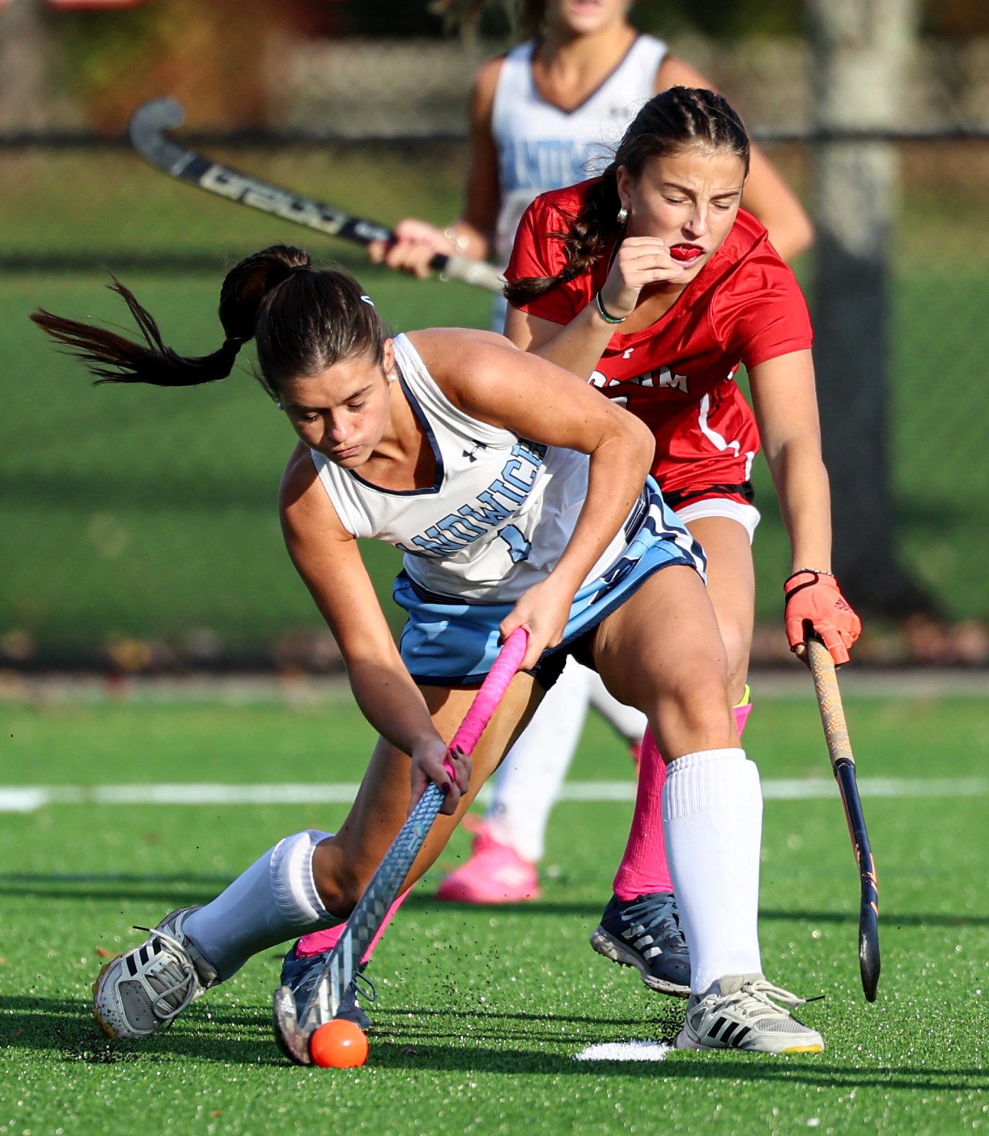 The last few minutes of each frame still proved dangerous, though, with Hingham seemingly playing its most intense. One reverse chip from the top of the circle in the third quarter fired just inside the right post, but Camryn Craddock (four saves) made a sensational kick save on the dive.