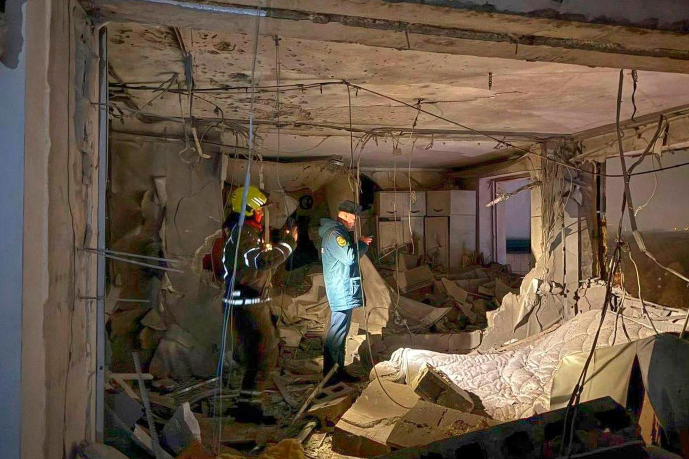 One drone hit an apartment building in Krasnogorsk on Moscow’s northwestern edge, injuring five people, including a child, according to Andrei Vorobyov, the governor of the Moscow region.
