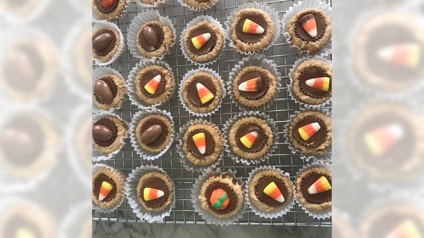 The kids can join in to make Mini Triple-Treat Cupcakes. Children can gleefully unwrap a load of miniature peanut-butter cups and press them into the unbaked batter in each paper lined mini-muffin cup. Older children, after a warning about the hot pan, can press a candy corn atop each one once they are out of the oven.