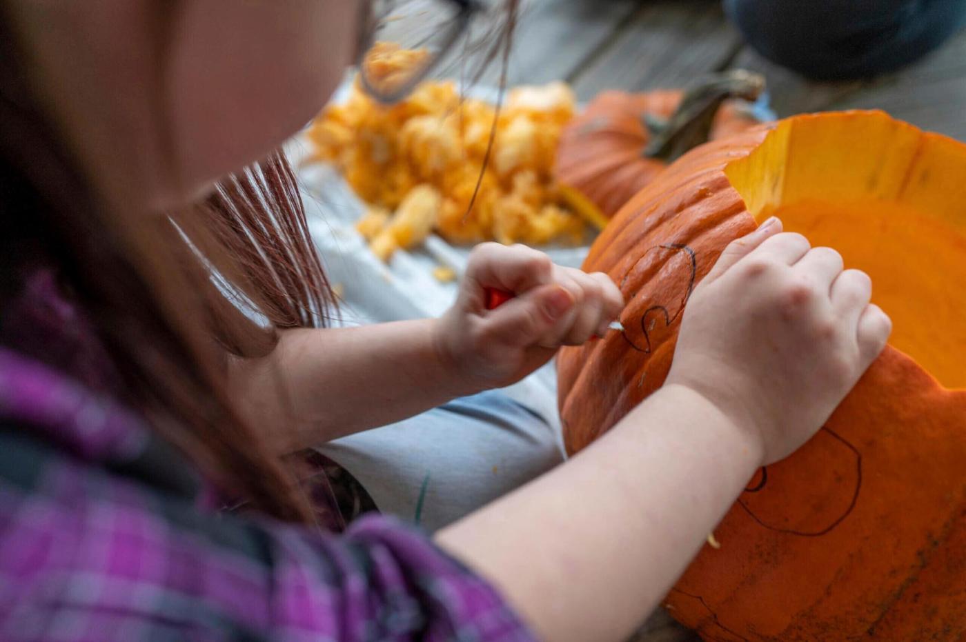 Edible parts should be collected while you’re carving and before it’s painted, decorated or left on your porch for weeks. Paint and wax aren’t food-safe, and bacteria and mold can grow on the skin in outdoor climates.