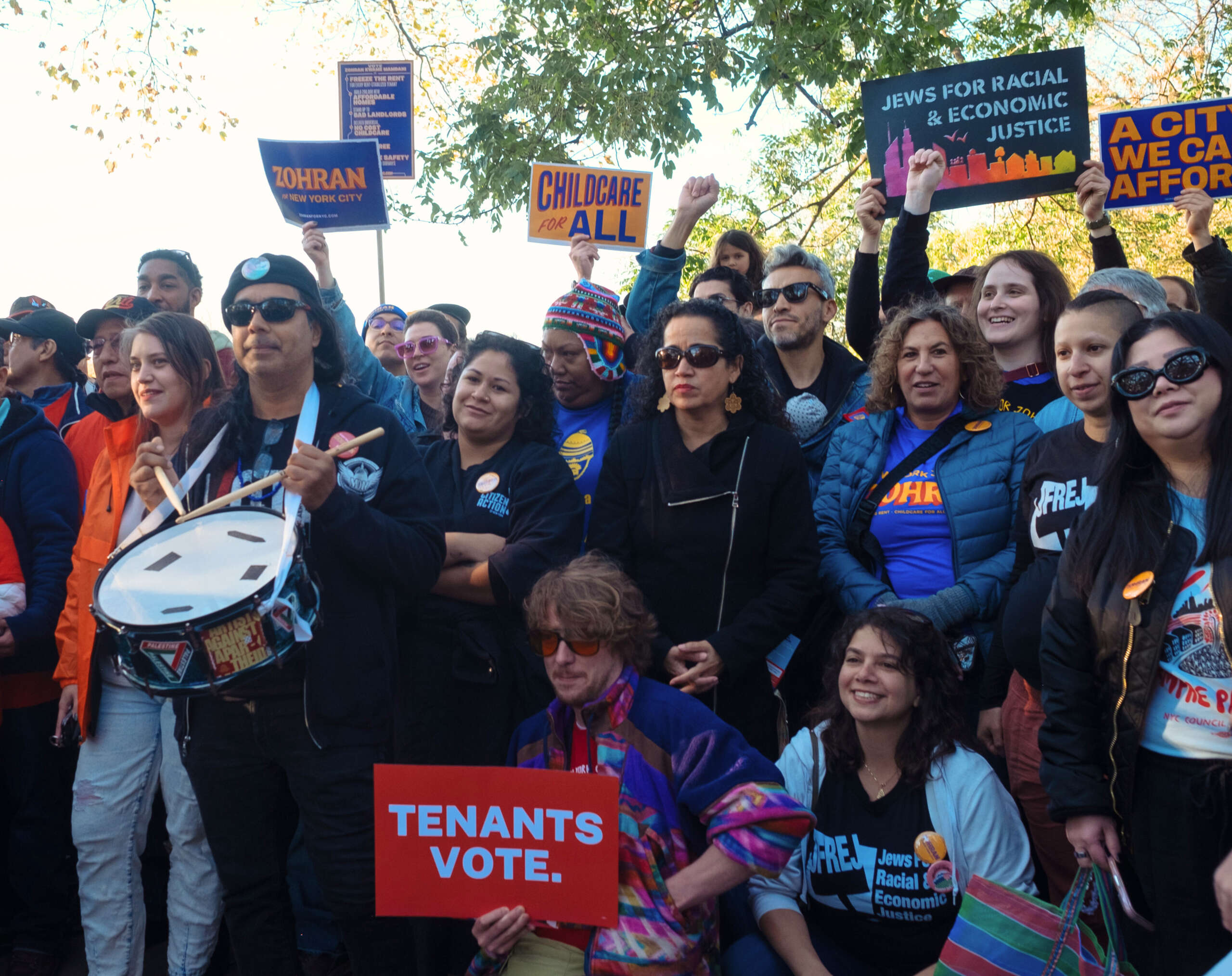 A group of Mamdani supporters, including tenant organizers, launching the “People’s Majority alliance,” ahead of Election Day in Sunset Park. (via the People’s Majority)