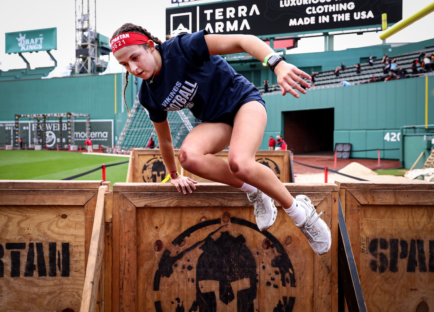 Evelyn Mendez of Randolph traverses the Helix during the Fenway Park Spartan Stadion race, Sunday. (Mark Stockwell/Boston Herald)
