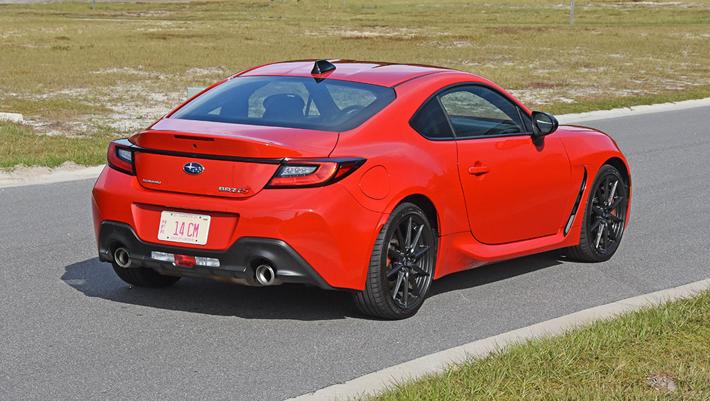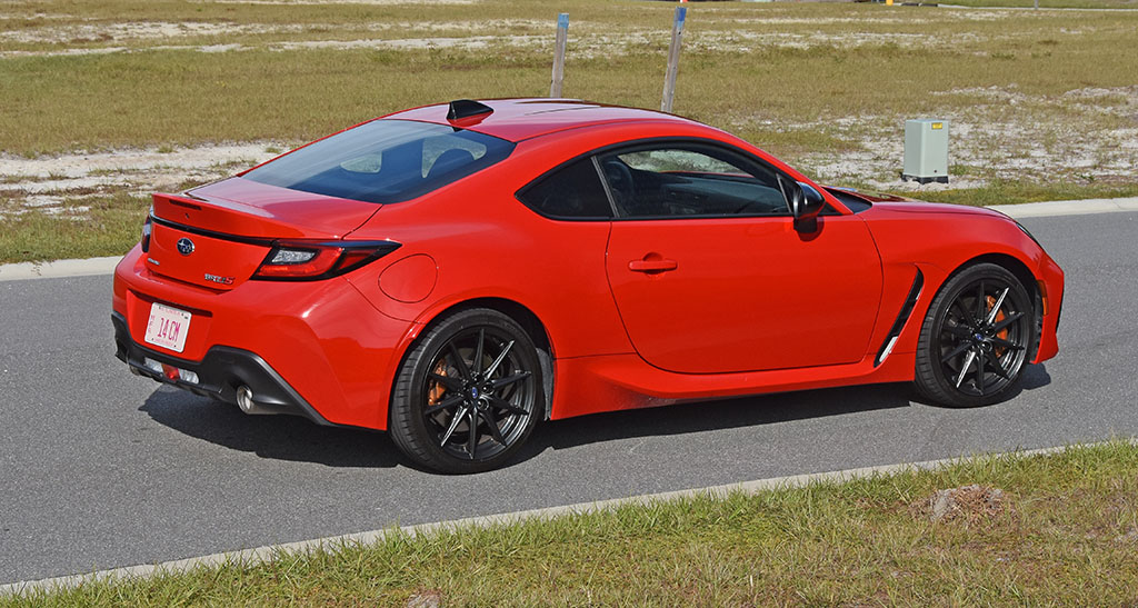 Subaru, alongside its nearly identical counterpart, the Toyota GR86, keeps the good times rolling in a simplified formula that’s mostly a two-seater but has the +2 rear seating setup more for looks than functionality, as taller folks will find the manually adjusted and nicely bolstered front Ultrasuede heated seats nearly hitting the rear seats.