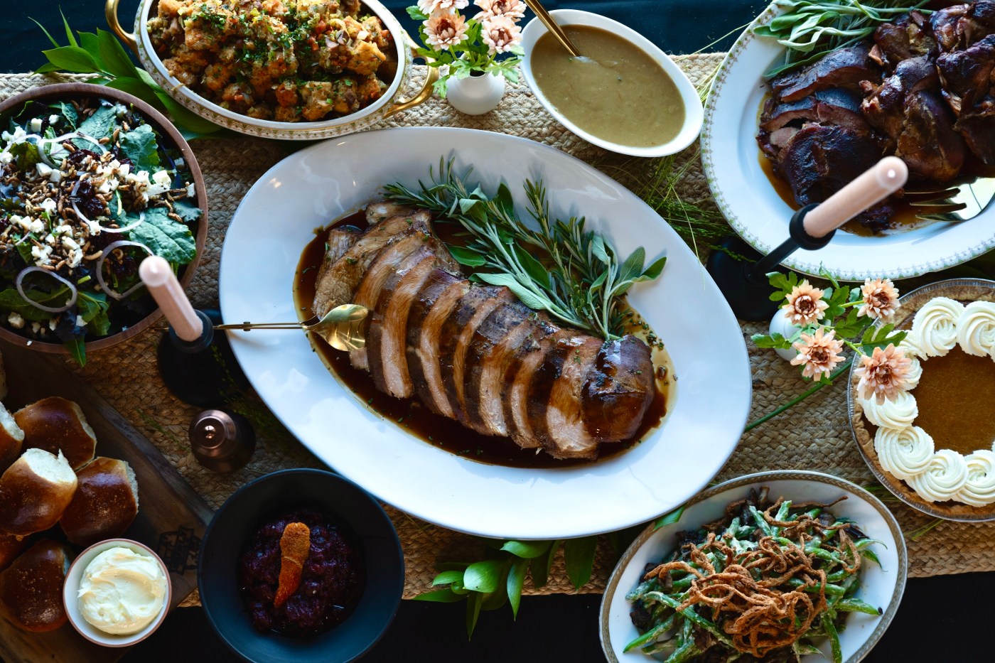 Roasted turkey roulade with chestnut and chicken-apple-sausage stuffing, green beans, cranberry, mashed potatoes, gravy and pumpkin pie with whipped cream. $45 per person. Order pumpkin pie with whipped cream. $45 per person; order by Nov. 21 for a Thanksgiving Day pickup. Complimentary 15-minute valet will be available at Hotel Ivy to pick up your orders on Thanksgiving.