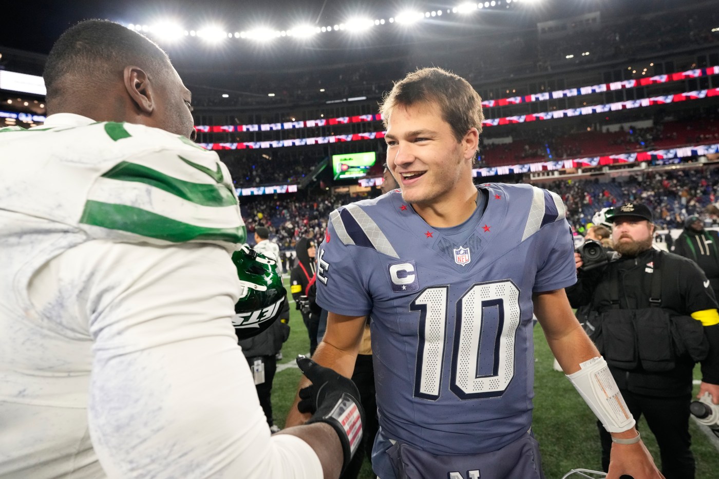 Patriots teammates, crowd back Drake Maye’s MVP case in win over Jets