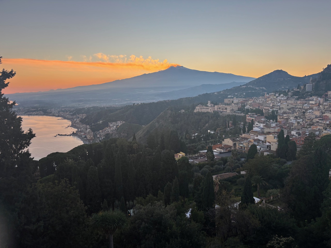 Giacomo picked us up bright and early from our hotel in Taormino, the beautiful hilltop town featured in season two of the “White Lotus.”  As soon as he began winding us down the many switchbacks on the road to and from Taormino, he was bringing us closer to Mt. Etna’s aura.