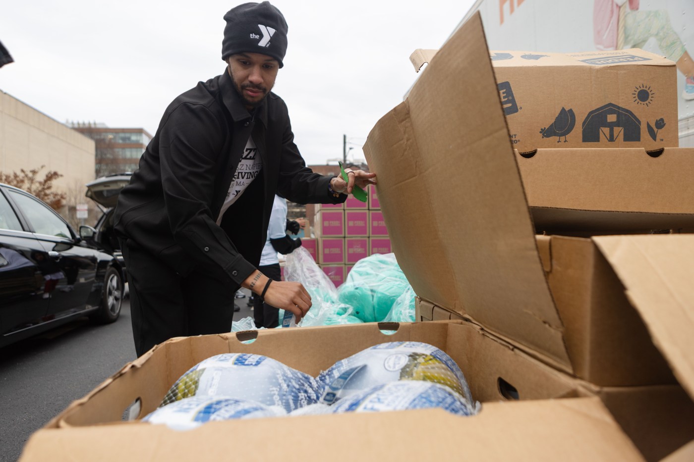 The National Basketball Players Association Foundation, YMCA of Greater Boston and Feed the Children teamed up in Sunday to distribute food and essential goods to 400 pre-registered families at the YMCA Food Distribution Hub in Roxbury.