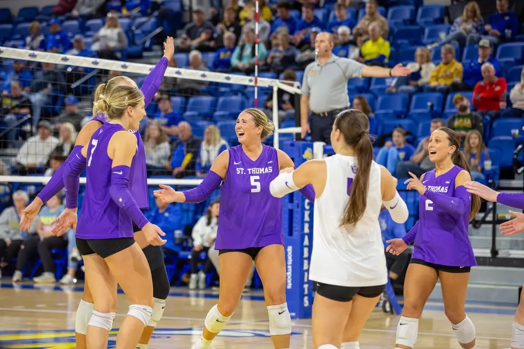 Anya Schmidt paced the Tommies with 19 kills, while Tezra Rudzitis added 17. Ella Voegele had a team-high 25 digs.