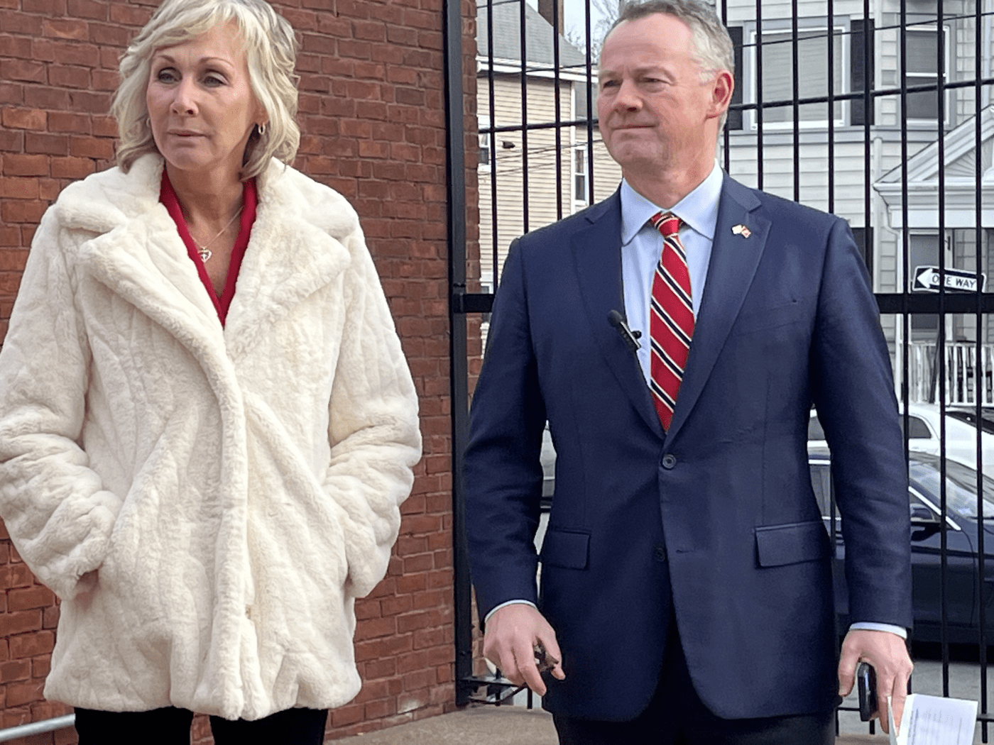 Republican gubernatorial candidate Brian Shortsleeve announces the endorsement of Taunton Mayor Shaunna O’Connell. (Tim Dunn/Boston Herald)