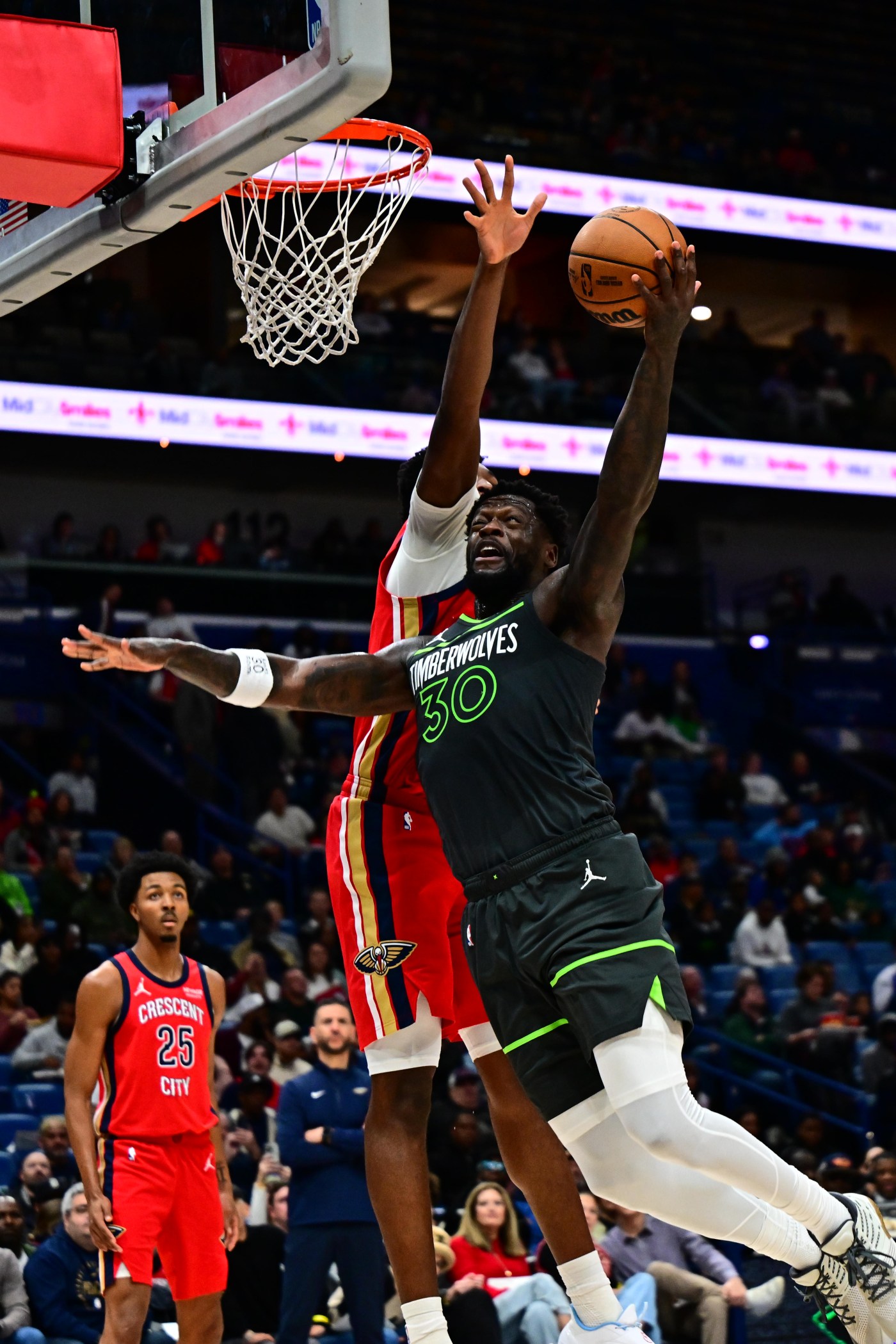 The Pelicans scored the first point of the fourth quarter for a 91-88 lead. The Wolves then scored 15 straight for a 103-91 lead and held on from there.