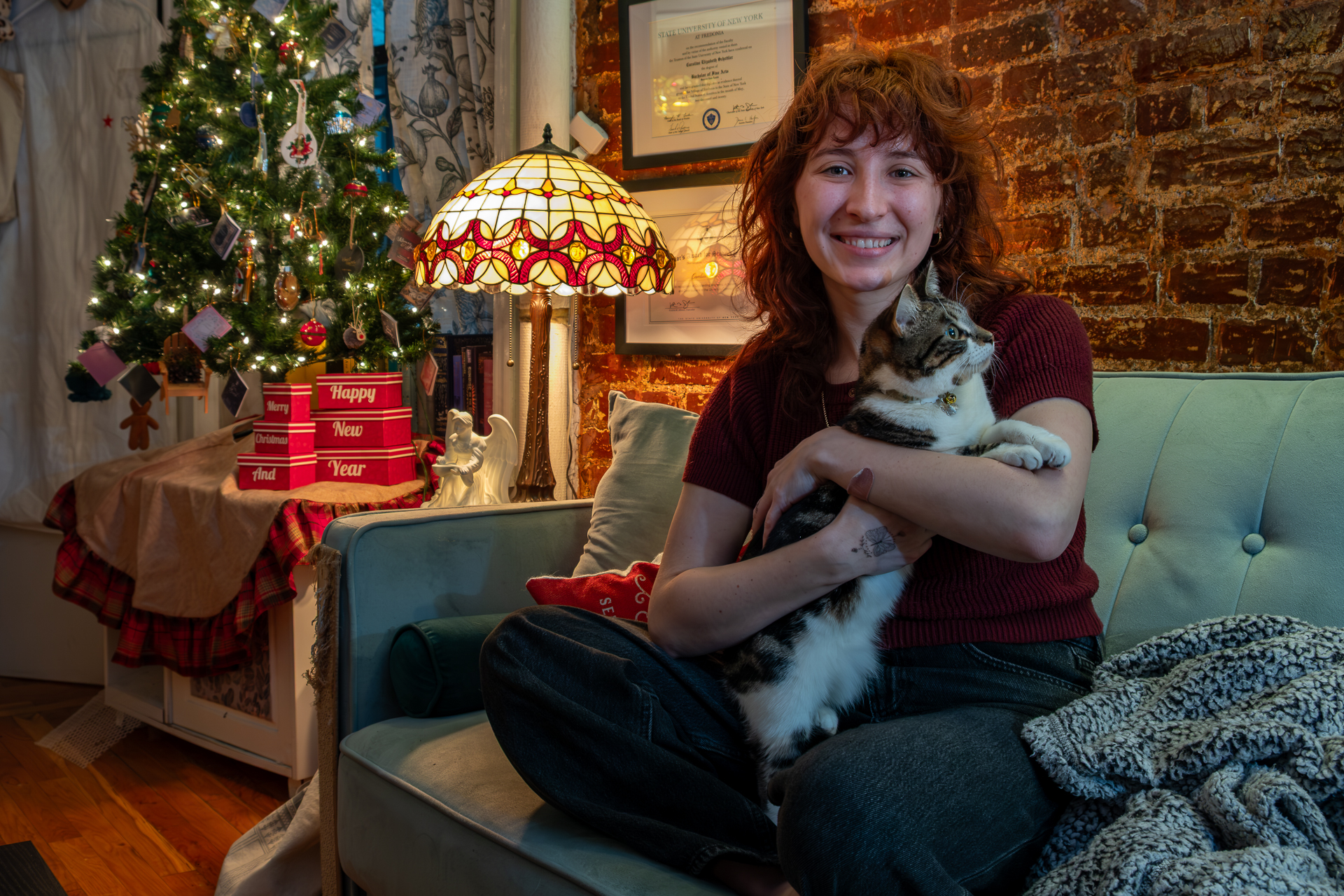 NEW YORK – Caroline Schettler, 28, in her apartment in East Harlem, where she said previous ownership was known for “slapping a Band-Aid over something that needs stitches—or needs surgery,” when it came to repairs. (Adi Talwar/City Limits)