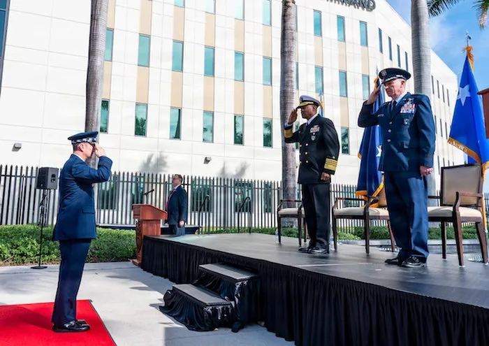 Caine said on behalf of all of the active-duty Americans serving in the nation’s armed forces, including the sailors and Marines “in the fleet afloat right now” off Venezuela, it was an honor to leave cold, gray Washington to officiate his retirement ceremony “in this awesome Miami weather.”