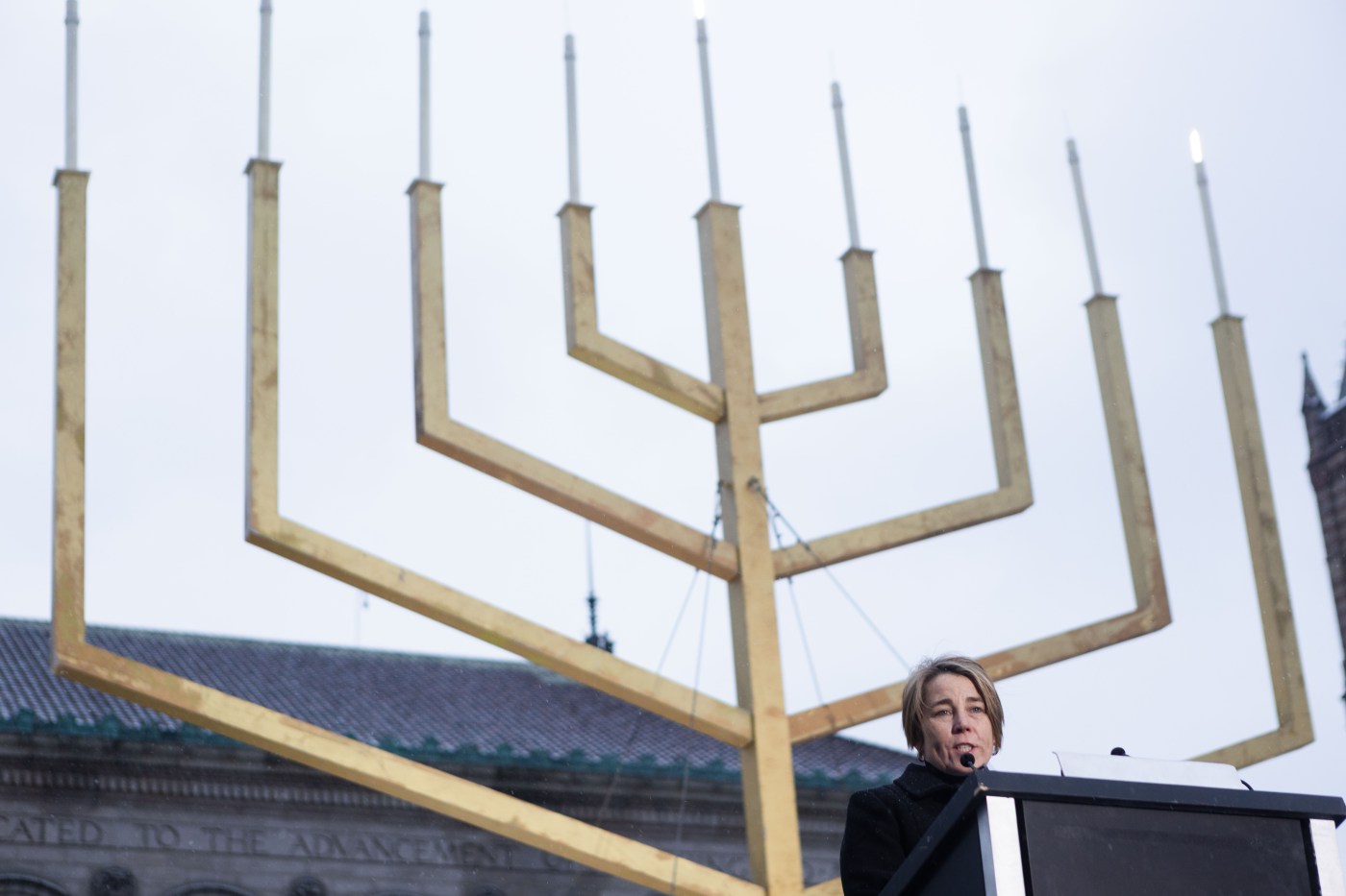Beacon Hill embraced Hanukkah Wednesday, as Jewish music reverberated through the state capitol. Students from Solomon Schechter Day School in Newton performed on the Grand Staircase in the morning, and the annual State House menorah lighting later in the day marked the fourth night of Hanukkah.