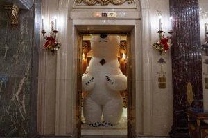 From Bethlehem to Beijing, people around the world are celebrating the Christmas season. A polar bear mascot boards an elevator during holiday revelry. Swimmers plunge into frigid waters off Northern Ireland for a charity event. Singers fill a stadium in Indonesia.