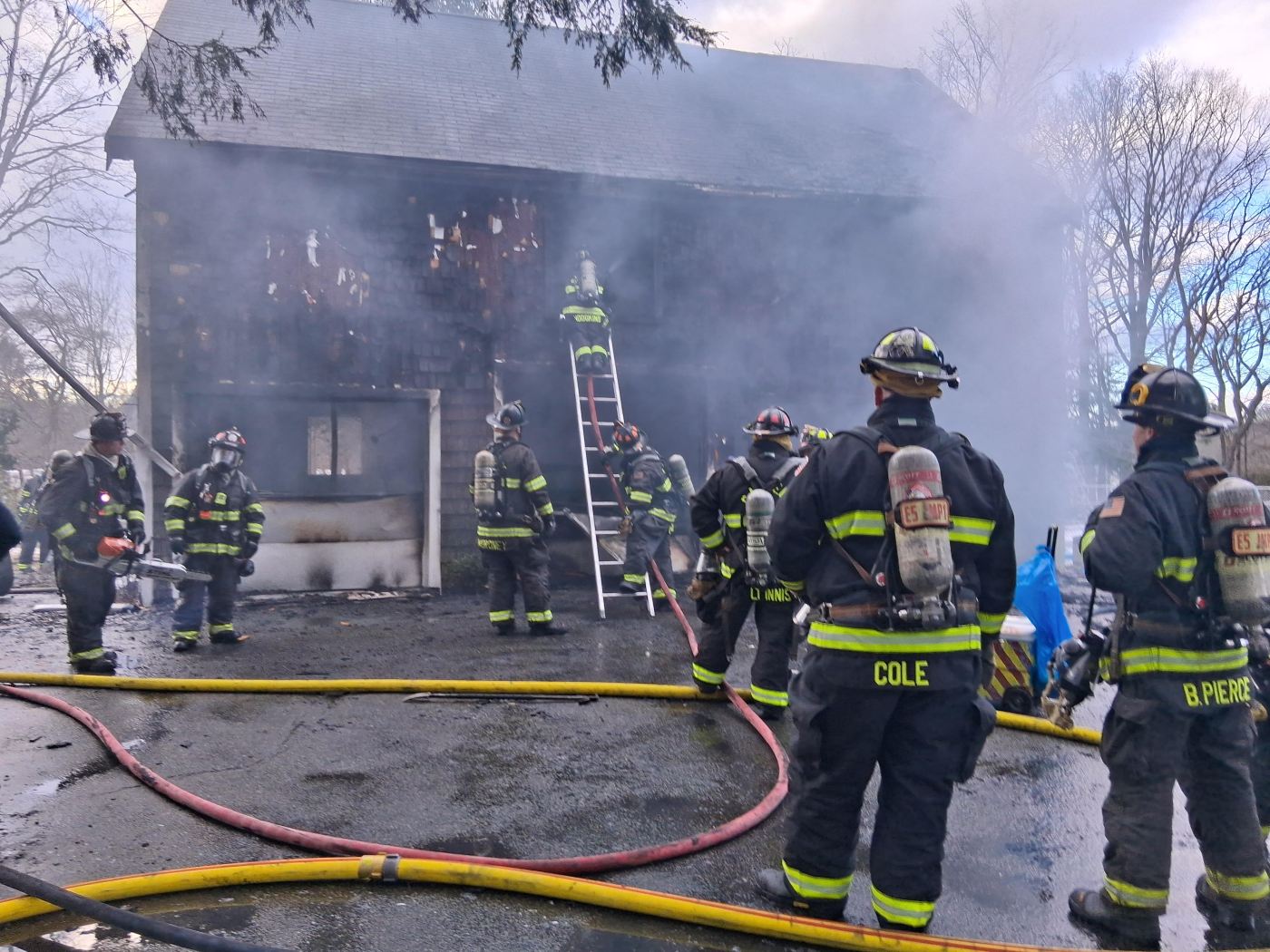 Danvers firefighters extinguish barn fire on Christmas, Whitman firefighters battle outside blaze that spread to wood deck