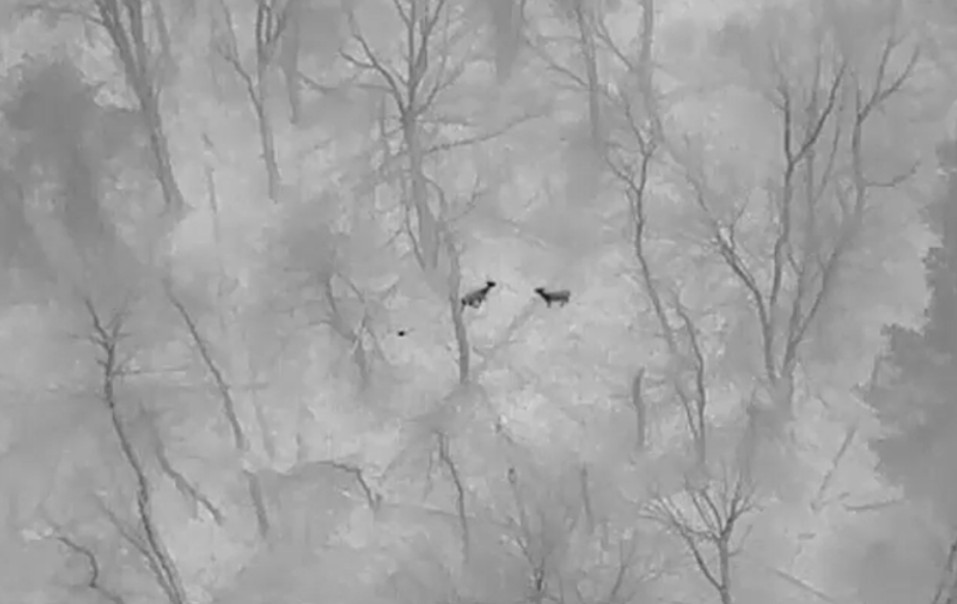 DCR partnered with the Massachusetts Department of Transportation Aeronautics Division to fly drones equipped with thermal infrared cameras over Quabbin Park. The technology, MacKenzie explained, allows autonomous flights over large forested areas and makes warm-bodied animals stand out clearly against cooler backgrounds, especially in winter conditions.